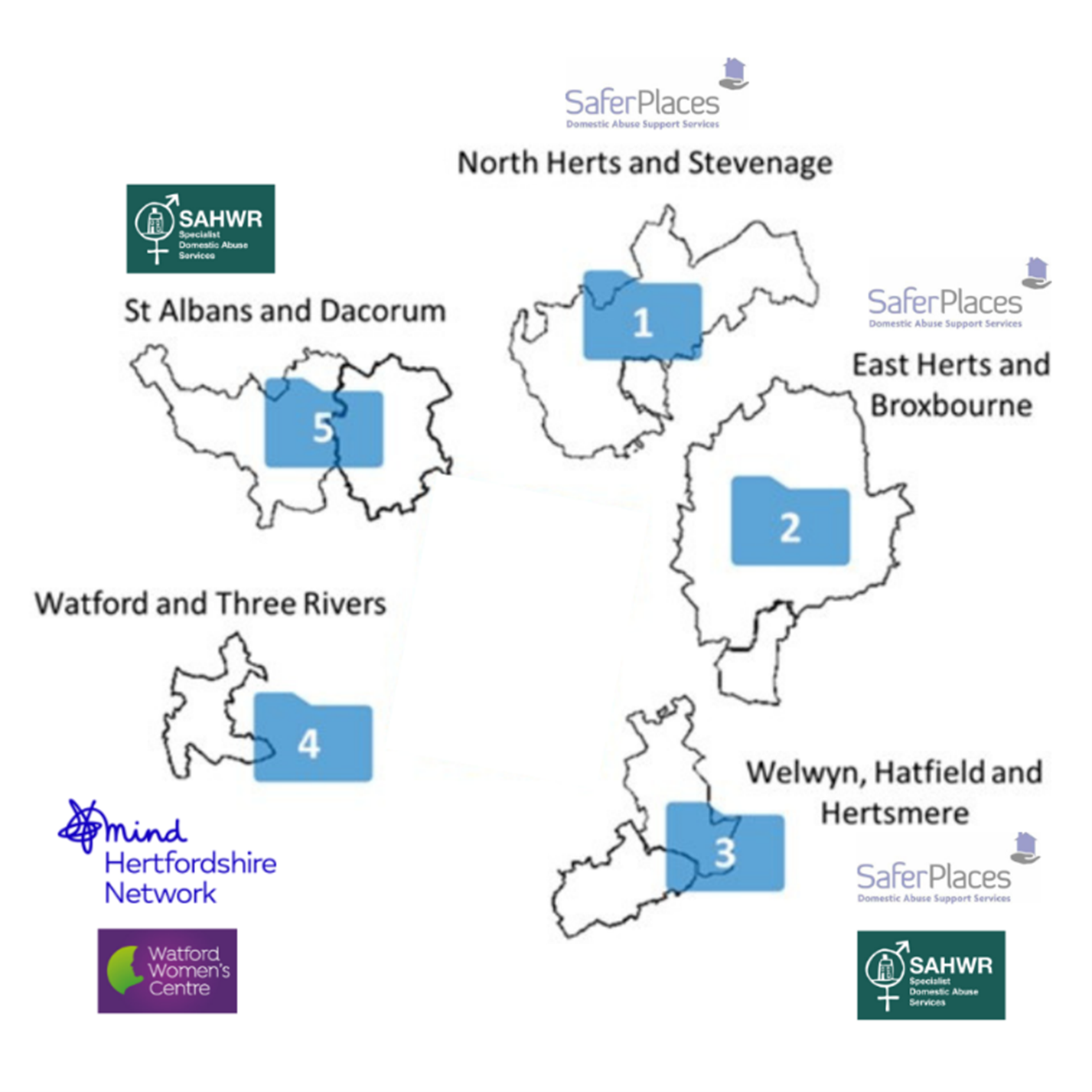 To help ensure the diverse needs of victims and survivors of domestic abuse living in Hertfordshire can be met locally, the service is being delivered over five geographical areas.